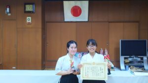 結果、本校高校1年の黒古華選手が準優勝、高校2年の森田真帆選手が5位に入賞の栄冠に輝きました。高段位の方も参加するこの大会での入賞は高校生としては快挙です。