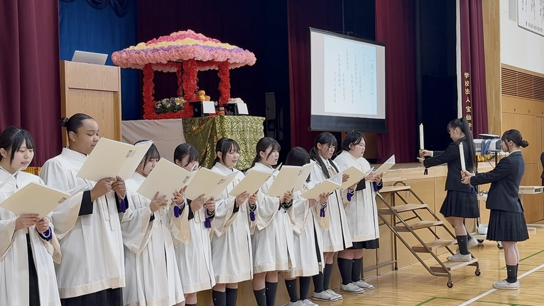 昨日の始業式に続き、合唱隊の皆さんの素敵な歌声が、ホール内に響き渡りました。