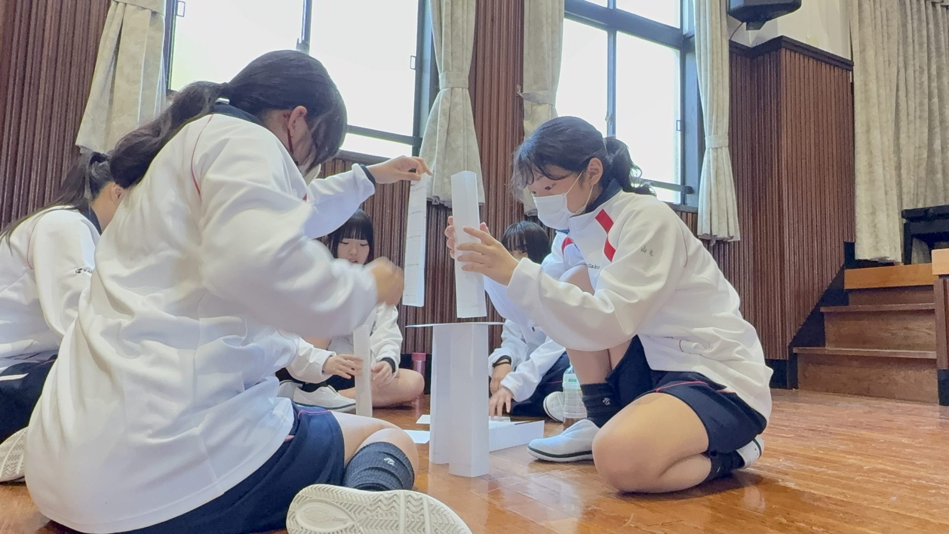 「身体表現」改め、CB(キャラクタービルディング)の授業では、ペーパータワーを作って、大いに盛り上がりました!