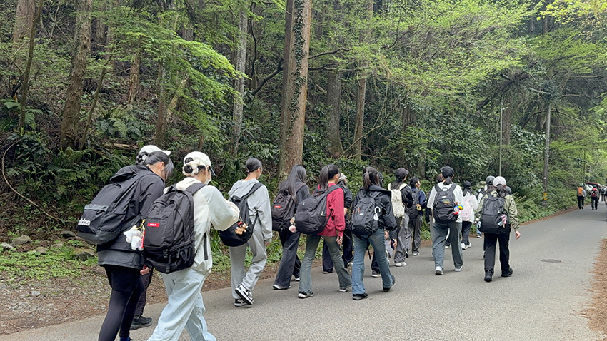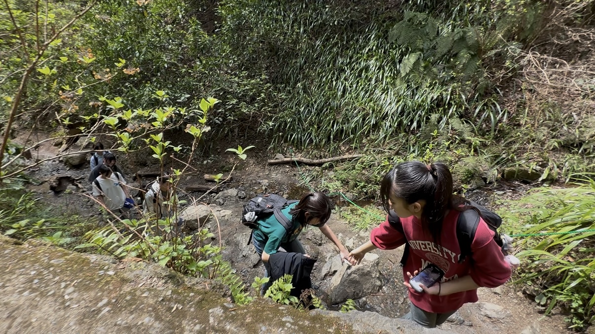 足場の悪い坂や長い階段が続く道を今年初めて登った1年生からは、「もう動けません」