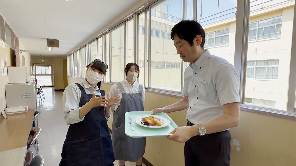 完成したフレンチトーストは、担任の先生の元へ試食用に届けられました。