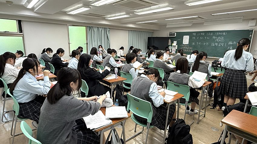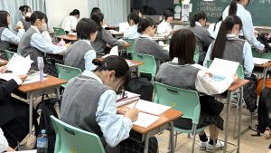 朝礼前に教室を覗いてみると、みんなプリントやテキストを広げながら