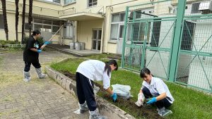 元気に葉が育ちすぎた中庭のお掃除や落ち葉掃き、校内のDIYなどを生徒たちに協力してもらい、だんだんと心地よい