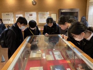 現地に着いてみると大学生が子どもたちを出迎えてくれていました。まず大学図書館にお邪魔して、大学生の学問研究の現場を見学しました。