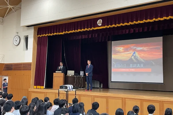 年に1回全学年対象で行われる進路の日。歴代の先輩たちから直接様々な話を聞くことができる機会です。第1部~第3部で構成されており、第1部は全学年共通で社会で活躍する卒業生の話を聴講します。大学生活や社会にでてからのリアルな話を聴き、自分の進路を積極的に考える絶好のチャンスとなります。