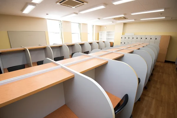 高校生は、平日は20時まで自習室の使用が可能です。放課後、生徒たちは静かな自習室で自己の課題と向き合っています。赤本や各種参考書も準備しています。また、本校の卒業生(チューター)が常駐し自習室を管理しています。自習室の近くにはチューター室も完備されており、常に学習のアドバイスを受けられる環境も整っています。
