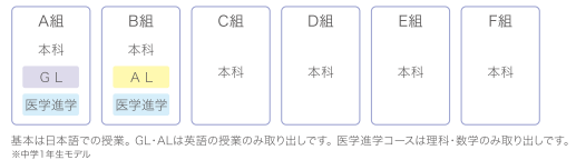 年度の切り替わりで、医学進学コース、GLコース、ALコースに試験を受け移動することができます。