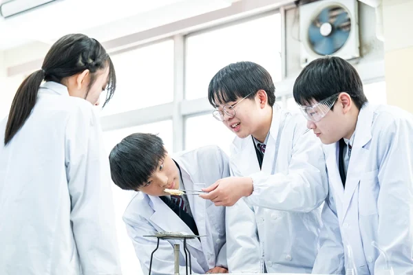 理数インターの生徒には、授業で扱っている内容が、ニュースで目にするテクノロジーや医療などの最先端分野とどうつながっているかを意識してほしいと思います。理科を学ぶほど、理数的思考力が養われます。一つひとつを検証しながら筋道を立てて解決方法を導き出していく方法は、文系や理系にかかわらず、研究する上でもビジネスの上でも必ず役立つでしょう。授業を通して、この学問作法を身につけてください。社会に出てから壁にぶつかった時、理数的思考力は心強い味方になってくれるはずです。なお、高校の理科では高い専門性を追究します。勉強するのは、高1が物理・化学・生物の基礎科目。高2の理系が化学と物理、化学と生物の2科目選択で、高3では高2で選択した2科目、あるいはその中の1科目を選択します。また、理系の最難関大学を受験する生徒には、個別に指導しています。