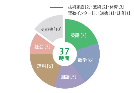 中学3年間の授業時間数は、学習指導要領と比較して約1000時間も多くなっています。これは、国公立大学の受験に必要な主要5教科の学力を確実に養うためです。本科コースでは先取り授業をせず定着と深堀を目的に授業をすすめていきます。医学進学コースでは数学と理科の先取り、GL(グローバル)コース・AL(アドバンストラーナーズ)コースでは英語の先取りをしています。