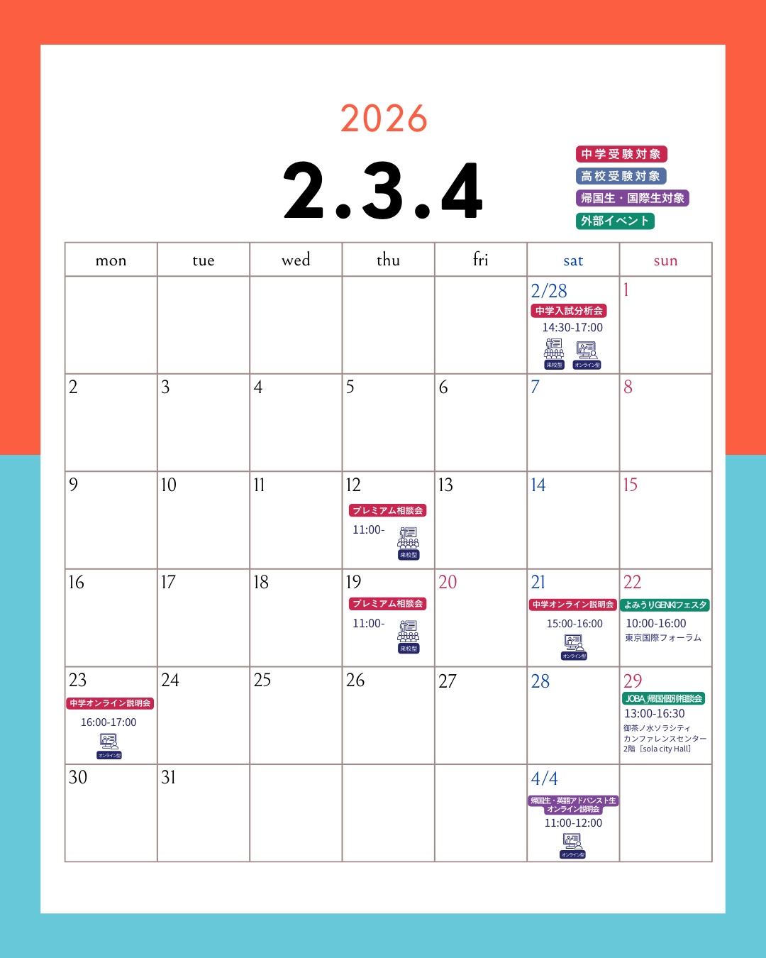 🆙【入試広報部より】2.3.4月の広報イベント情報