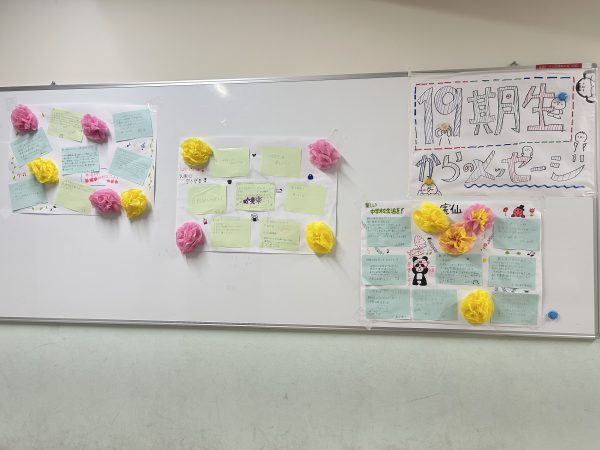 4月5日入学式に向けて、前日に中学2年生の有志生徒が新入生を歓迎する飾り付けを行いました。